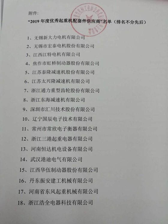 虹橋公司入選中國重型工業(yè)協(xié)會(huì)起重機(jī)配套件供應(yīng)商