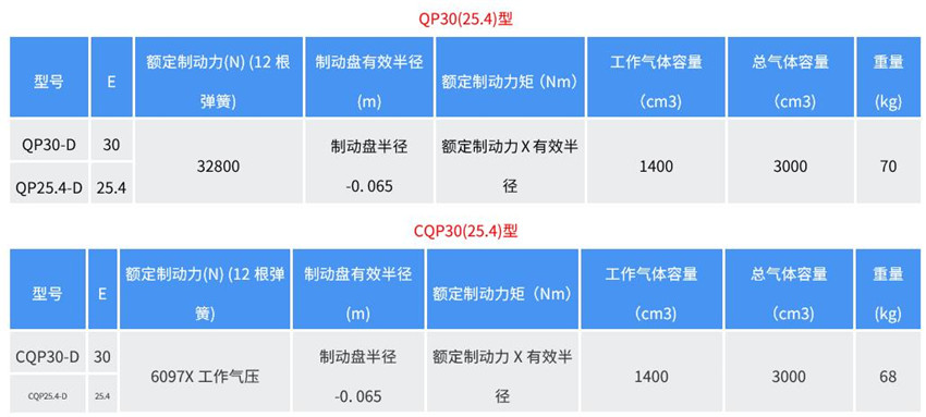 QP系列為彈簧制動(dòng),氣動(dòng)釋放;CQP 系列為氣壓制動(dòng),彈簧釋放。