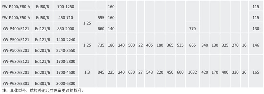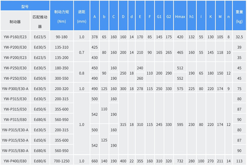 YW-P系列的電力液壓鼓式制動(dòng)器的安裝尺寸符合DIN15435和JB/T7021-2006標(biāo)準(zhǔn),YW-P-A的產(chǎn)品安裝尺寸符合GB6333-1986,其技術(shù)要求符合JB/T6406-2006標(biāo)準(zhǔn)。